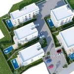 In diesem Fall teilen sich die Erdgeschosswohnungen einen Pool und den Garten, während sich die Penthousewohnungen eine Dachterrasse teilen.